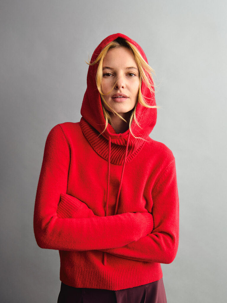 Full-zip in misto cotone garzato dotata di cappuccio con coulisse. Due tasche frontali. Ricamo logo sul petto.